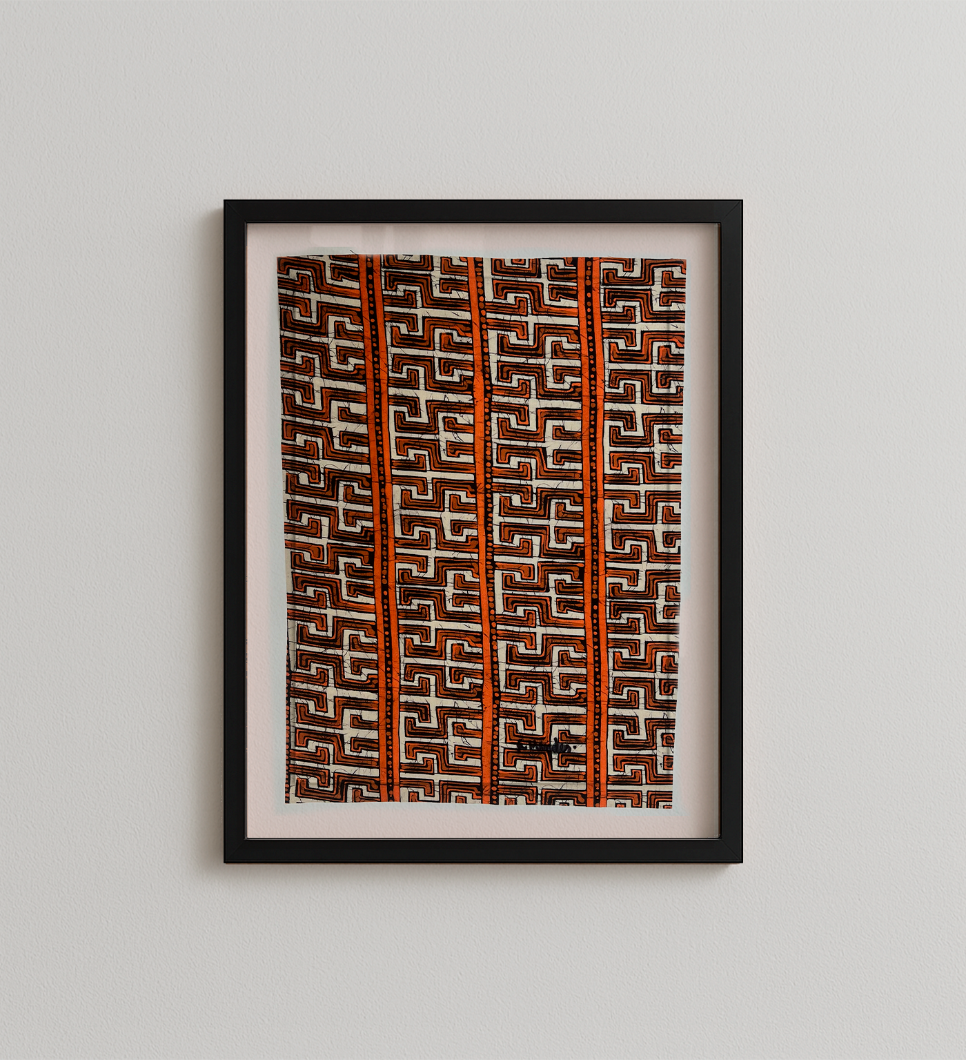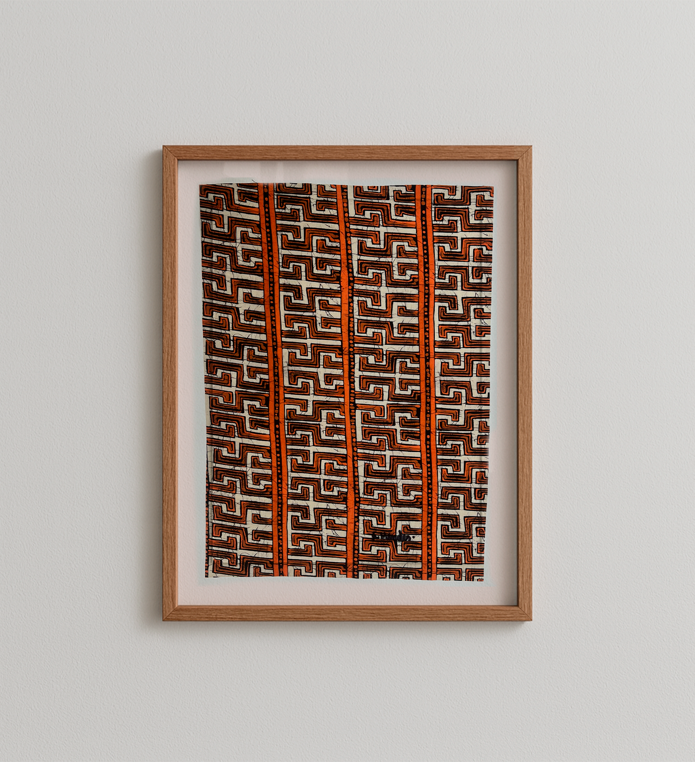 BATIK 03, de Luiz Mendes, destaca-se pela vibrante combinação de tons terrosos e laranjas que acompanham seu padrão geométrico inspirado no batik tradicional. Uma peça cheia de presença, calor e força visual.
