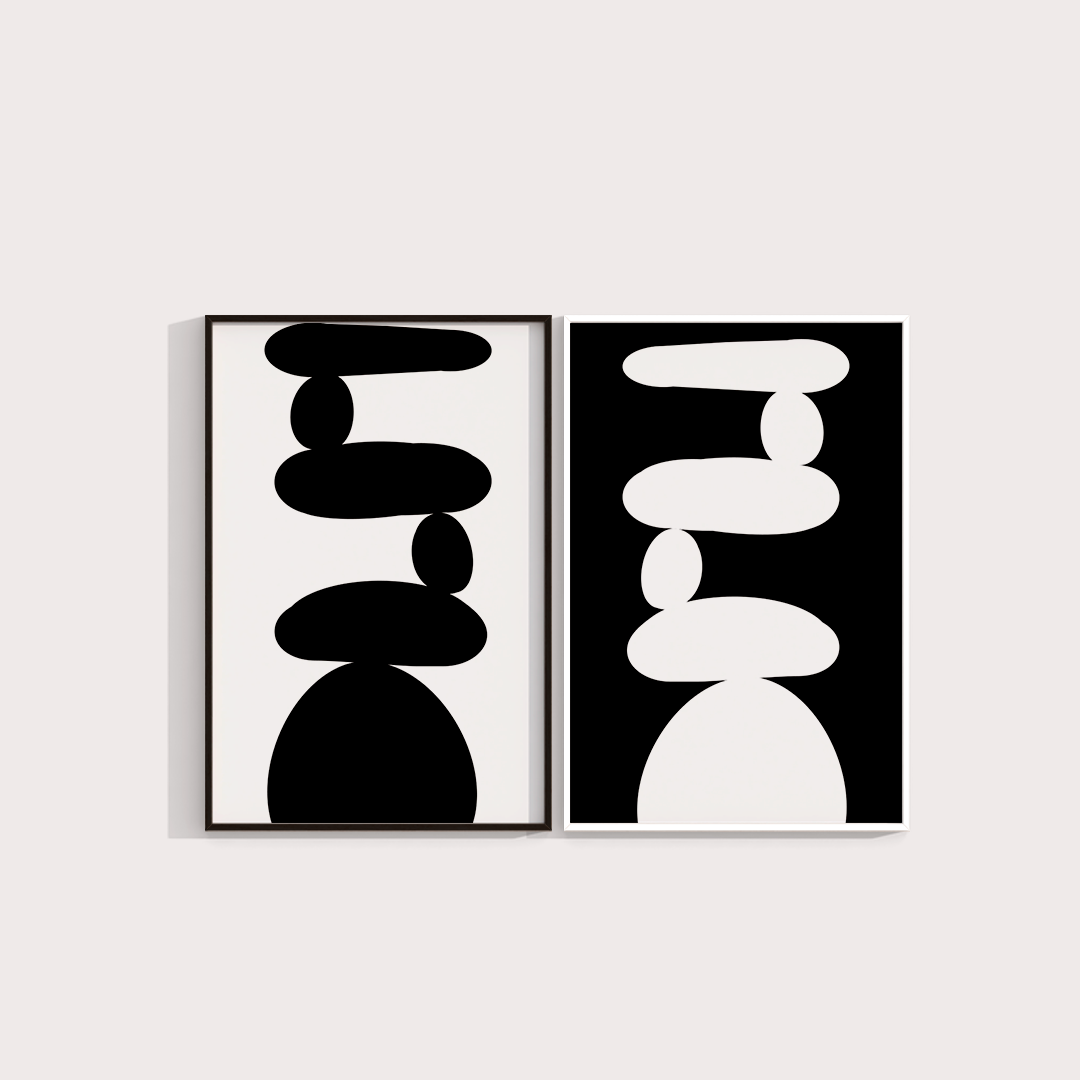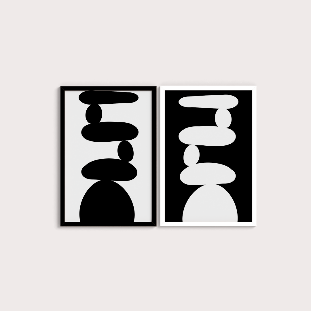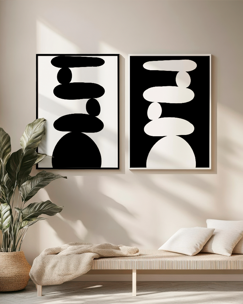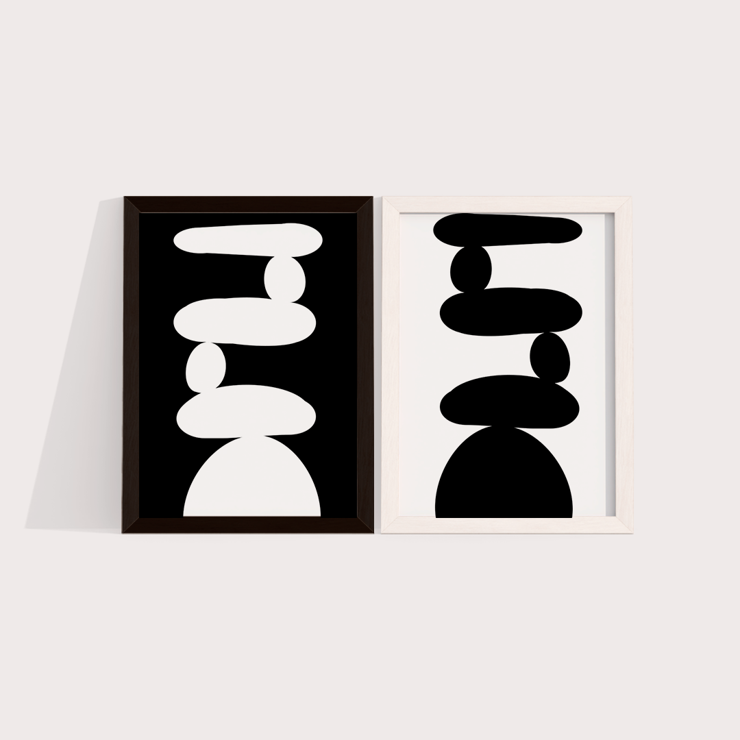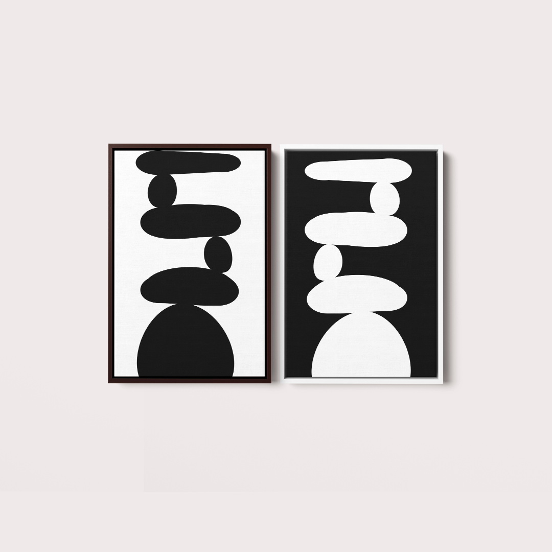Composição de 2 quadros decorativos com moldura opostas Branca e Preta: