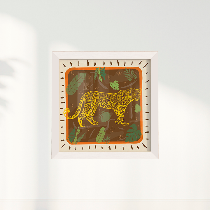 Moldura Padrão, Moldura Filete com Acabamento Premium e Moldura Caixa com Acabamento Premium são feitas em madeira de alta qualidade, com fundo de foam board e acompanham vidro, oferecendo uma proteção elegante e duradoura para sua obra de arte. Disponíveis nas cores branca, preta ou madeira mel.